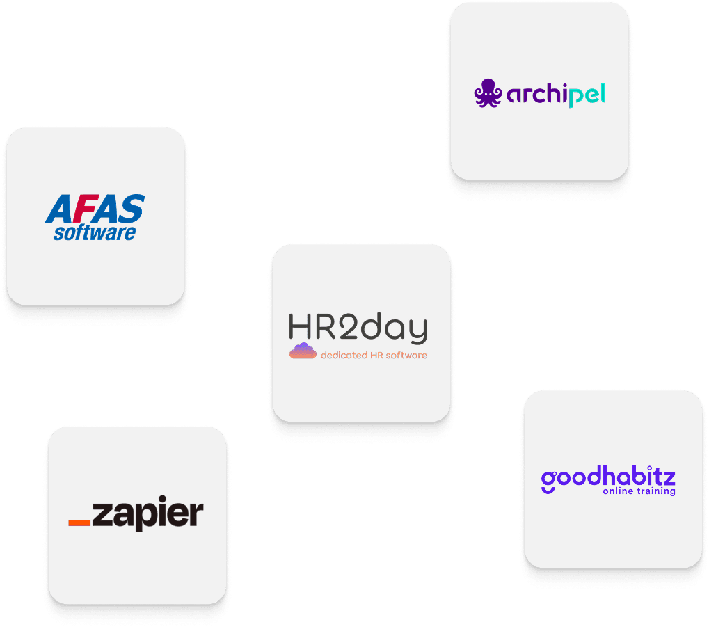 Koppel leerdata en HR-systemen via onze veilige integraties en integreer met onder andere AFAS, HR2day en Persionio.