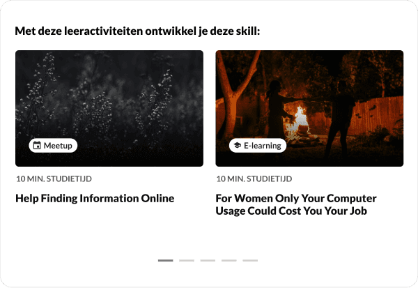 We hebben oog voor jouw medewerkers. Ze volgen eenvoudig leertrajecten, versterken competenties en werken aan persoonlijke groei. Wij staan klaar om hen, en dus jouw organisatie, te laten groeien.