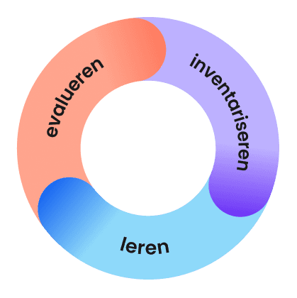 Leren wordt pas echt krachtig als je weet waarom je leert en wat het oplevert. Daarom meten we de impact van leren met data, feedback, zelfevaluaties en gesprekken. Zo krijg je een compleet beeld van de voortgang. Wat je hieruit leert, neem je weer mee naar de volgende stap. Zo begint de cyclus opnieuw.